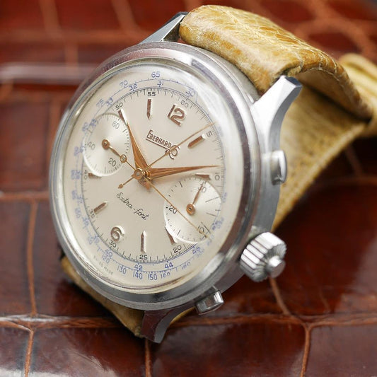 Explore our collection of vintage Eberhard watches, a distinguished Swiss brand known for its precision, craftsmanship, and innovative designs. With a rich history dating back to 1887, Eberhard has built a reputation for creating reliable and stylish timepieces that combine tradition with modernity. From classic chronographs to elegant dress watches, each vintage Eberhard piece exemplifies the brand’s commitment to excellence and horological expertise. Whether you’re a seasoned collector or a first-time buyer, owning a vintage Eberhard watch means owning a piece of Swiss watchmaking history.